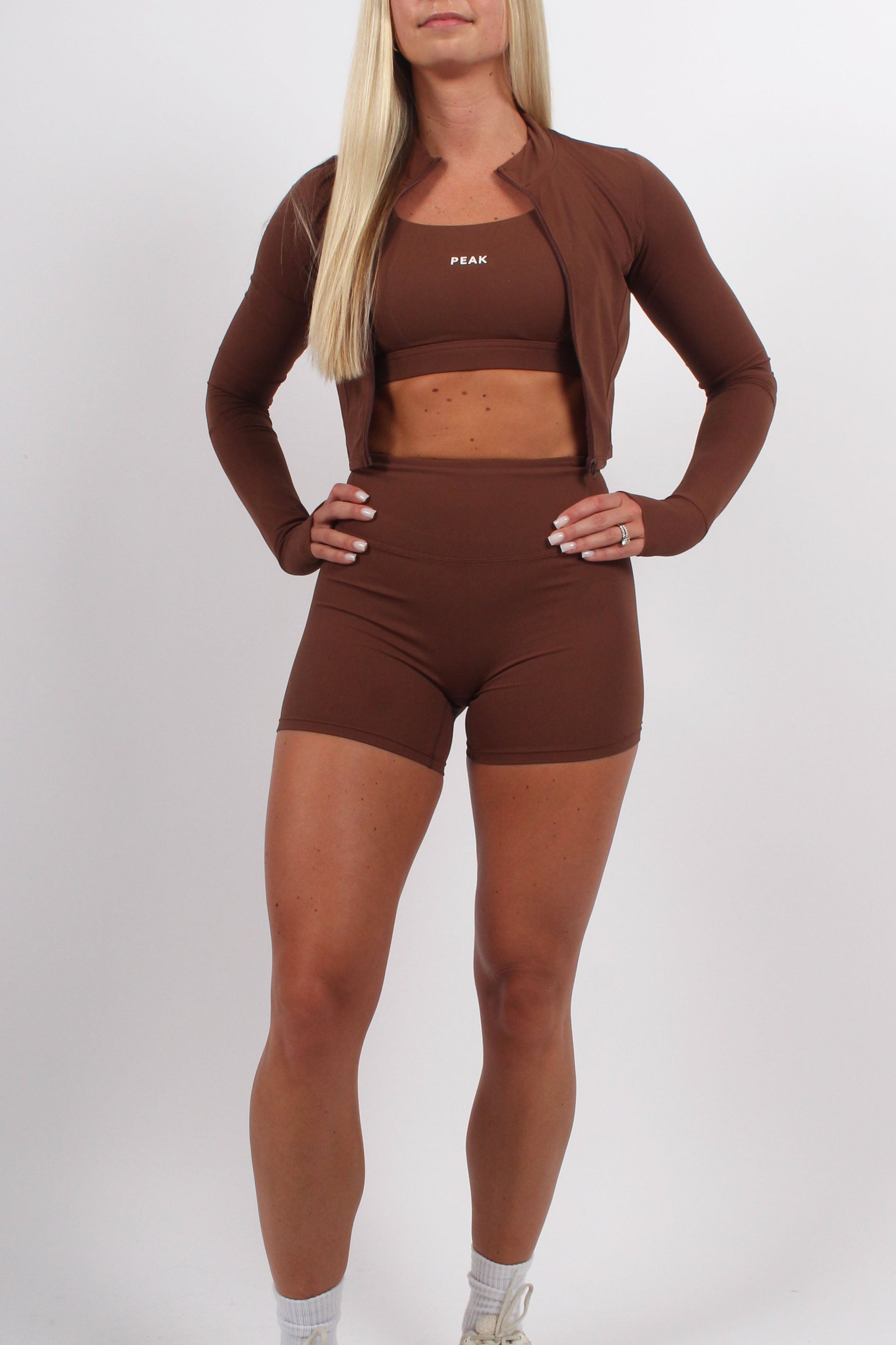 - PEAK branding on back of left leg