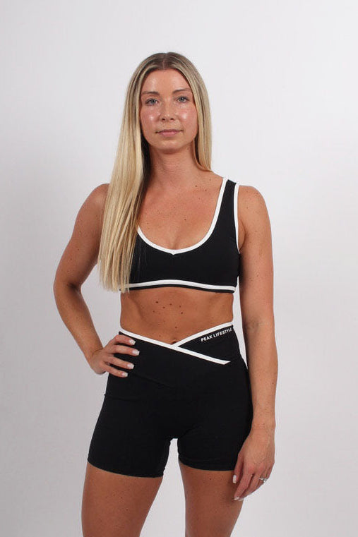 Defined lines for everyday support. This sports bra features a bold white outline that frames your form and sharpens your silhouette. Complete your look with the Crossline Short.