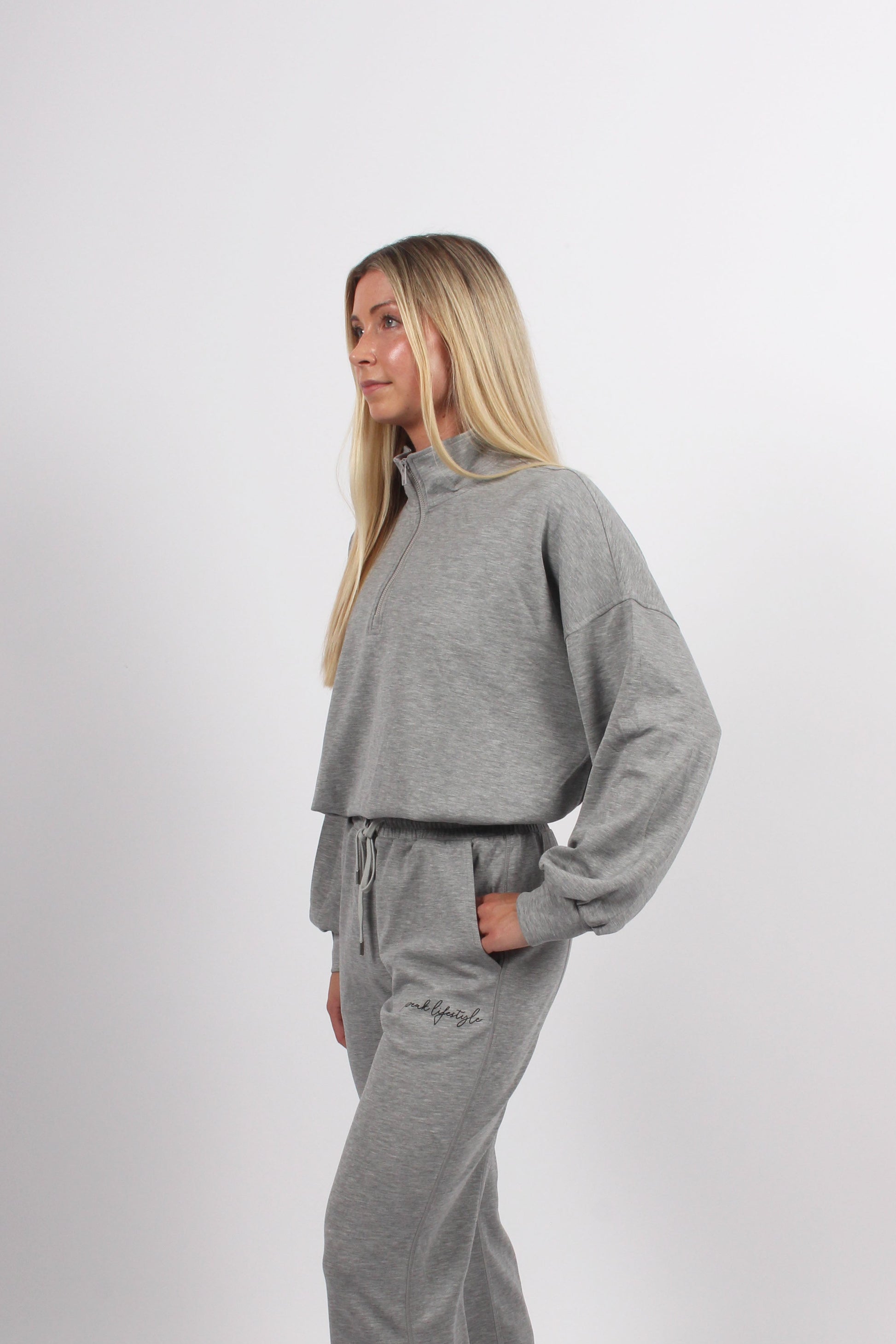 - Half Zip top, semi-cropped with adjustable drawstring